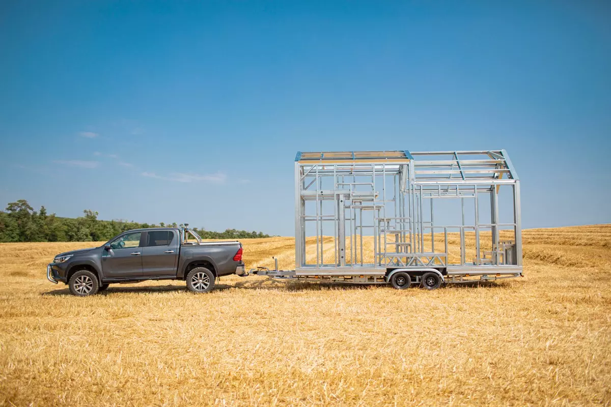 - Vysoká pevnosť, nízka váha: Oceľový skelet výrazne odľahčuje celú stavbu, čo je kľúčové pre dodržanie hmotnostných limitov podvozku a ťažného vozidla.