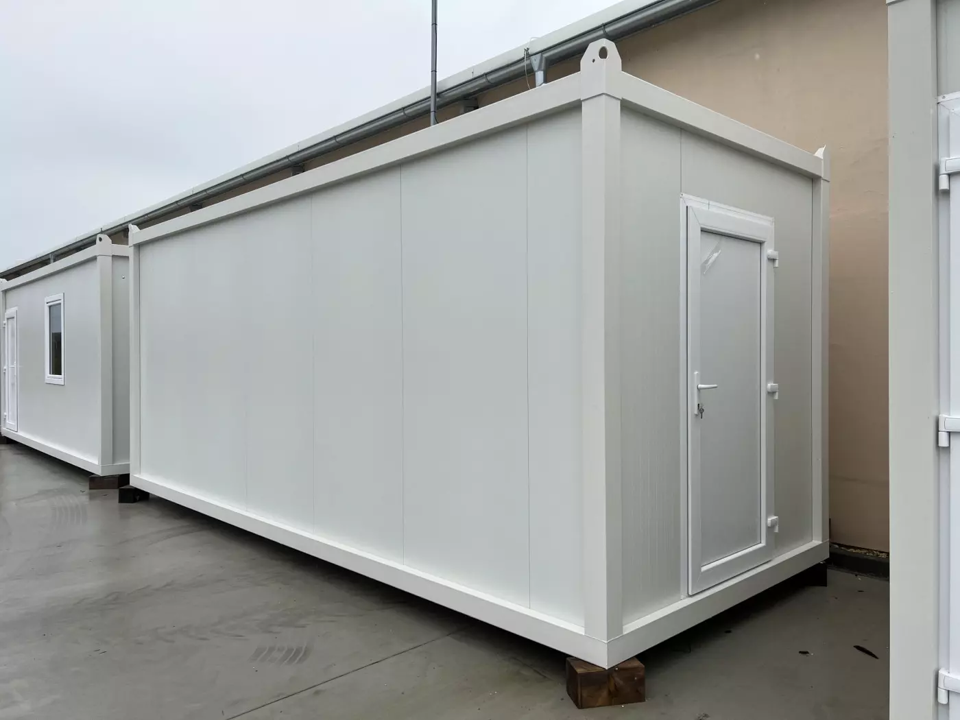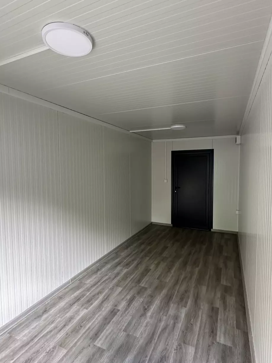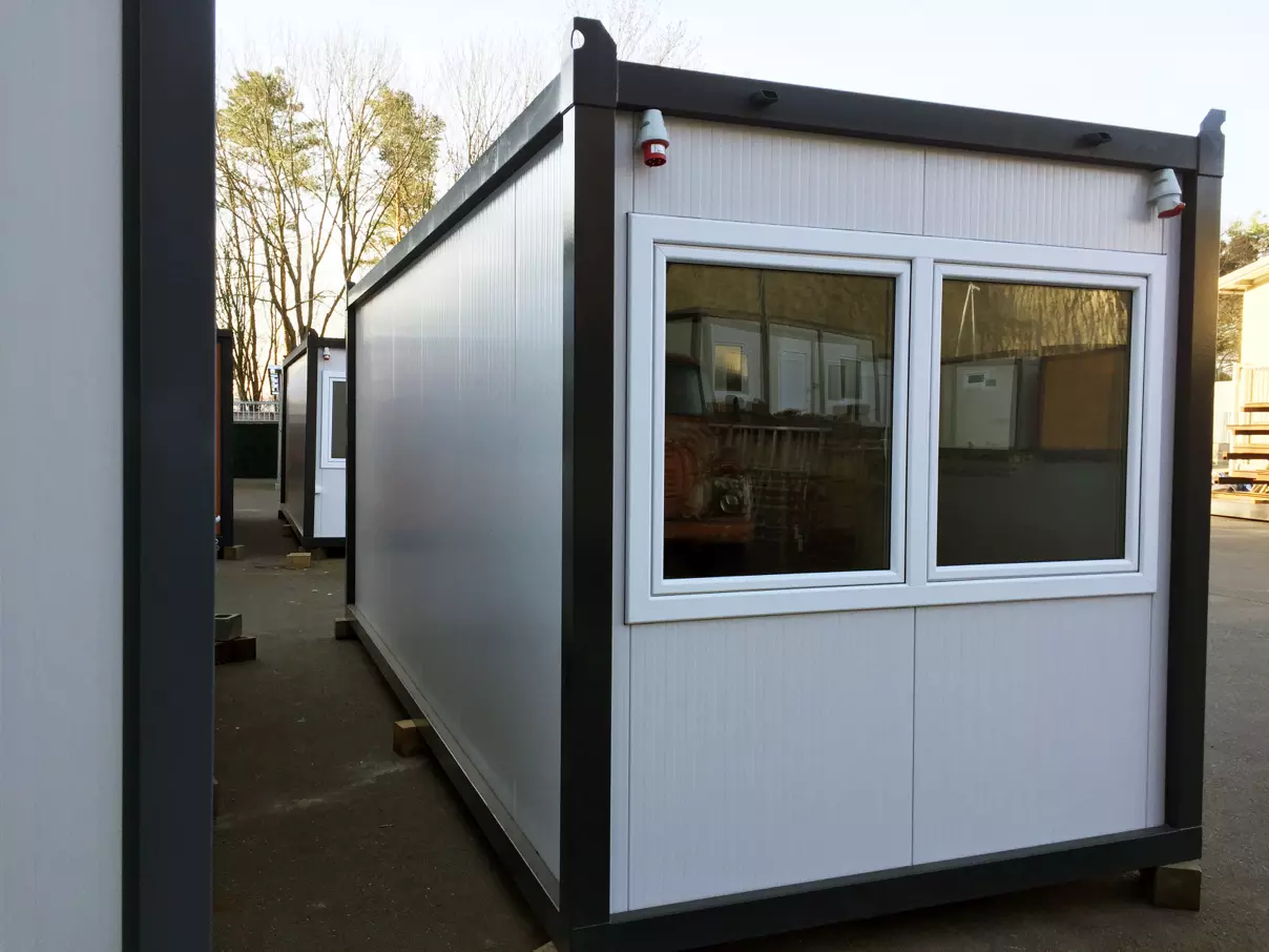 Štandardom sú biele (RAL9002) sendvičové panely (50mm) a biele (RAL9002) rámy, ktoré však môžeme nastriekať do rôznych farebných odtieňov. Kontajner má kompletnú elektroinštaláciu realizovanú našími certifikovanými elektrikármi. Modul obsahuje 1 plastové okno (dvojsklo) na úzkej strane a plastové / kovové dvere na opačnej úzkej strane.