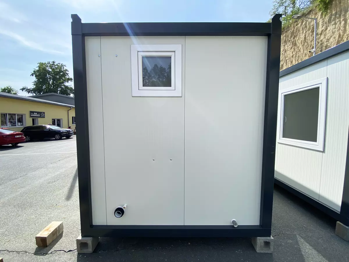 Obytný kontajner s plne vybavenou sanitárnou miestnosťou.
