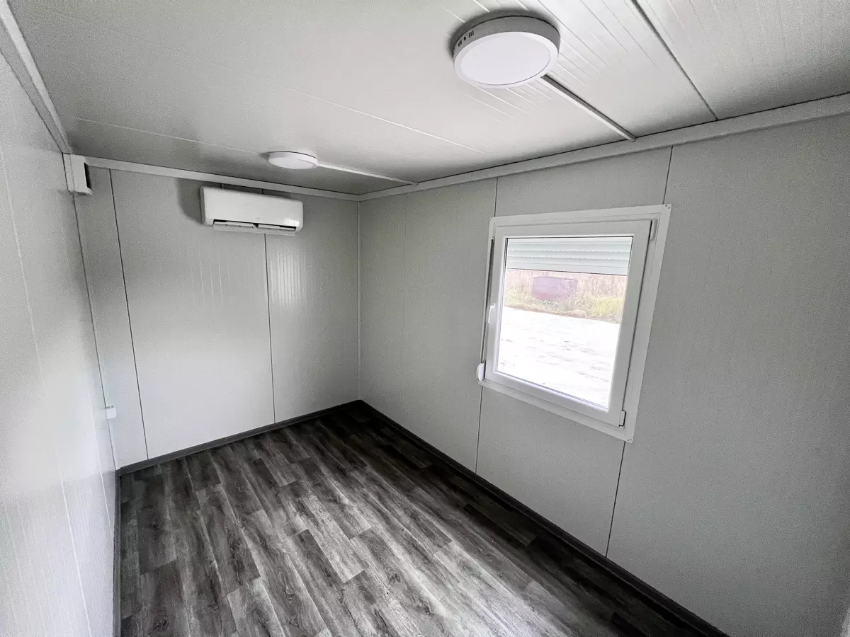 Kontajnerový modul K05 má rovnaké vybavenie ako kontajner K04 - kompletná sanita s malou kuchyňou, ktorá je však umiestnená v oddelenej vstupnej miestnosti z ktorej sa cez 2 interiérové dvere vchádza do obytnej a zvlášť do sanitárnej časti. Tento kontajner sa najčastejšie využíva na obytné účely, prípadne ako zázemie pre pracovníkov. Všetky vnútorné priečky sú zo sendvičových PUR panelov (50mm). V sanitárnej časti je umiestnené splachovacie WC s vonkajším vývodom, malé umývadlo, sprchovacia vanička s batériou, 50l bojler na ohrev vody a malé vetracie okno. Kuchynský drez s batériou a úložným priestorom je umiestnený vo vstupnej hale, do ktorej sa vchádza plastovými zateplenými exteriérovými dverami. V obytnej časti je umiestnené veľké plastové okno. Tieto moduly štandardne vyrábame v rozmeroch 600x240cm so zváraným oceľovým rámom (viď. ilustračné foto), ale mimoriadne populárne sú aj nadrozmerné moduly 600x300cm a 700x300cm zo šroubovanej pozinkovanej oceľovej konštrukcie BAUCORE. Kontajnerové moduly sa dajú jednoducho prepravovať a spájať do väčších priestorov. Dostupné sú biele (RAL9002) sendvičové panely (50mm) a biele (RAL9002) rámy a taktiež príplatkové sendvičové panely s imitáciou dreva alebo v antracite. Rámy vieme taktiež vyhotoviť v rôznych farbách. Kontajner má kompletnú elektroinštaláciu realizovanú našími certifikovanými elektrikármi, ktorú vieme prispôsobiť podľa požiadaviek zákazníka. Na modul vieme osadiť väčšie okná, rolety, mreže, sprchovací kút, hlinníkove presklenné dvere, klimatizáciu, väčšiu kuchynskú linku a podobne. Dažďová voda je odvádzaná zabudovaným systémom v konštrukcii.